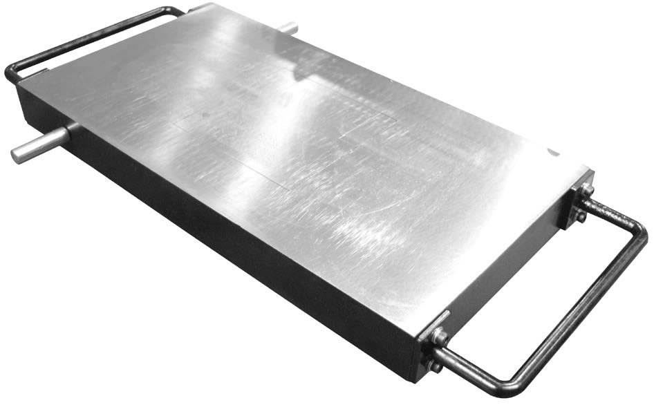 To be fitted with Automatic and Touch Screen compression machine equipped with rectangular platen 500 x 270 mm to test block specimen. Surface hardened over 55 HRC & finished with polish grinding.