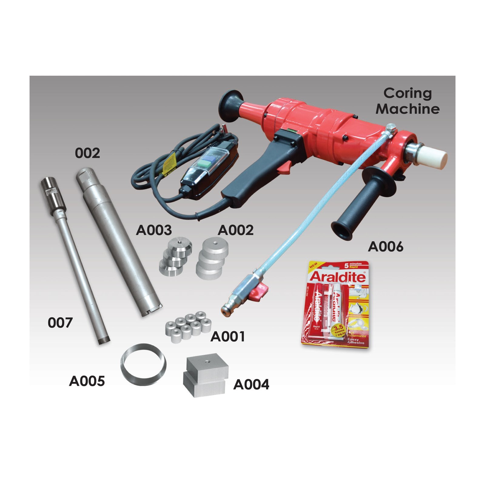 Used to determine the bonding strength of concrete overlay adhesion. Also suitable for measuring the strength of applied coatings such as plastic, mortars, plasters, tiles, bituminous coats as well as paint & other coatings on metal. It tests at any measuring point on the component, without requiring specimen preparation. However, a suitable depth of coring diameter same as the test disc is prepared prior to pulling off the surface bonding. Supplied without accessories.