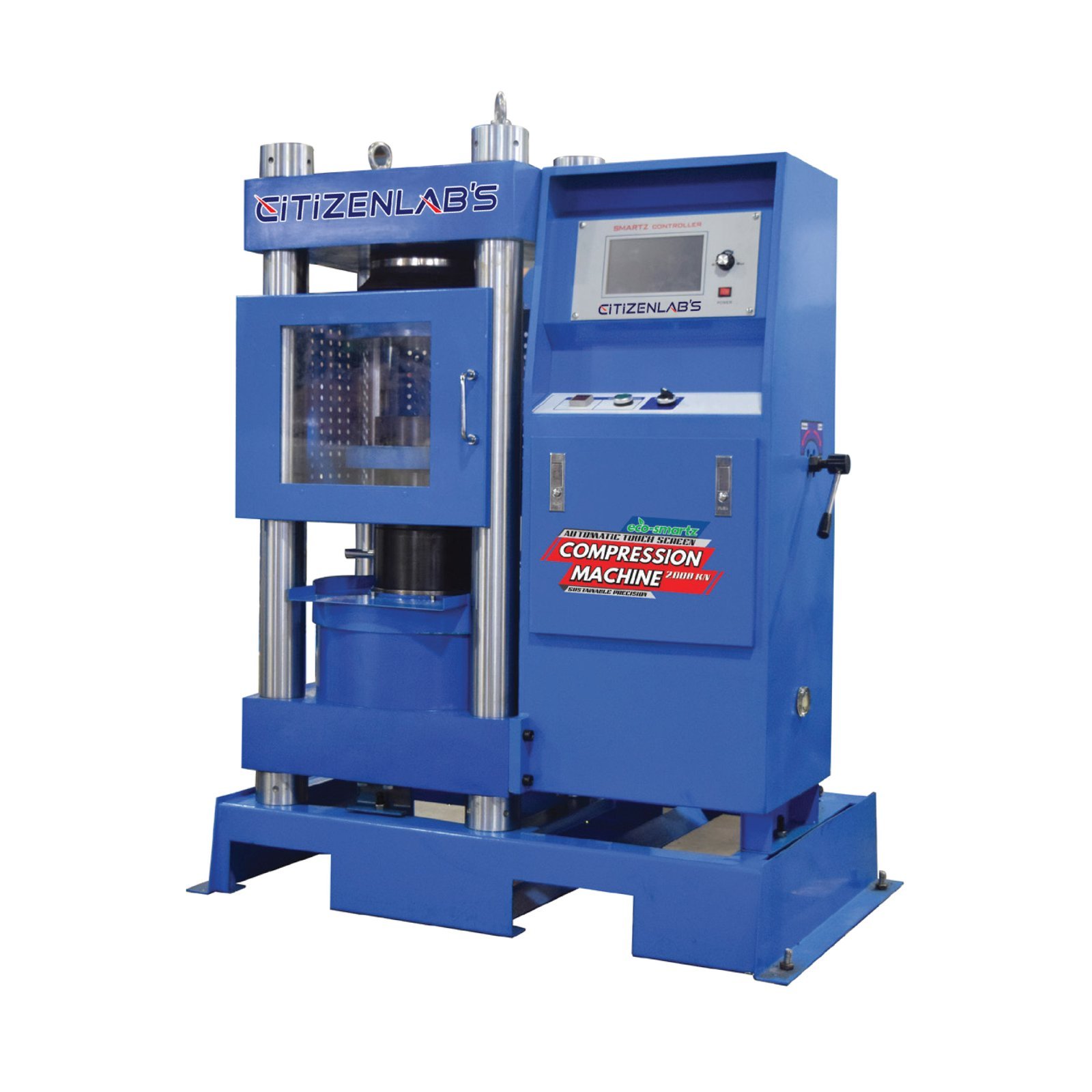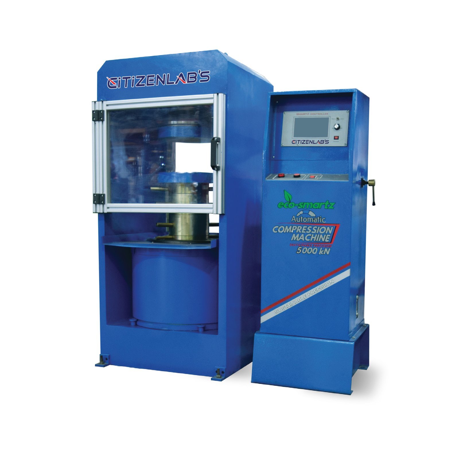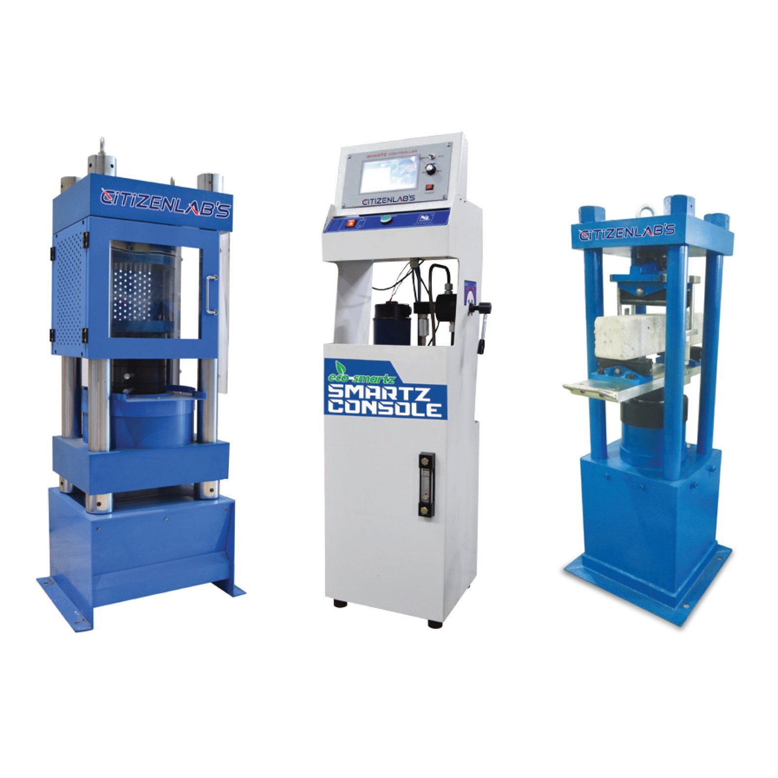 Stand-alone power and control console unit, using DC Motor couple with 5 element radius injection hydraulic pump and control by Smartz Controller, able to perform with dual frame on compression both high and low range. (APPLICABLE FOR COMPRESSION 50 KN – 3000 KN)