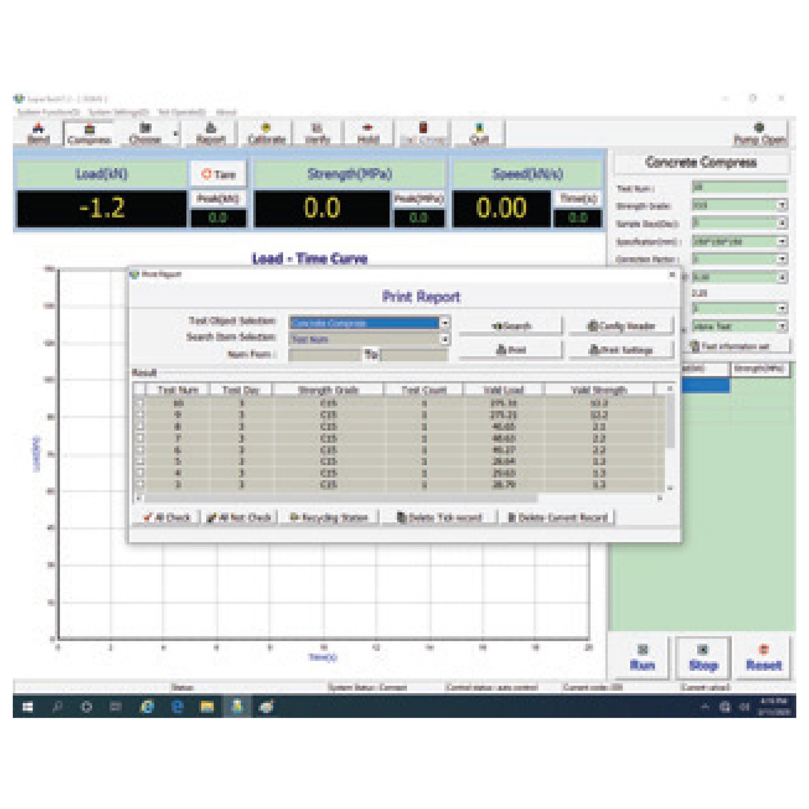 Standard: EN 196-1, ASTM C 109, EN 12390-5, ASTM C78, C293Compression and Concrete Flexural Beam Testing Machine 300kN, AutomaticCompression and Concrete Flexural Beam Testing Machine 300kN, Automatic is a combination of compression and flexural test machines to measure the resistance to compression and bending (flexure) of cement and mortar by applying controlled forces to specimens.The purpose of these tests is to determine which material parameters are best for construction like strength, elasticity, and deformation characteristics, which ensure the safety and durability of materials in various applications ranging from construction and manufacturing to research and development.This automated Low Range machine comes with a dual range test method, it can perform mortar compression and concrete beam flexural tests. Built-in industrial computer with touch screen functional and equipped with Testmaster Software V7.2. Supplied with compression jig and concrete beam flexural device.Features of Compression and Concrete Flexural Beam Testing Machine 300kN, AutomaticDual Range Test Method: Capable of performing both mortar compression and concrete beam flexural tests, allowing for versatility in testing different materials and applications.Automated Operation: The machine is automated, reducing the need for manual intervention and ensuring consistent and accurate test results.Industrial Computer with Touch Screen: Equipped with a built-in industrial computer featuring a user-friendly touch screen interface for easy operation and control.Testmaster Software V7.2: Comes with advanced Testmaster Software V7.2, which provides comprehensive data acquisition, analysis, and reporting capabilities for efficient testing procedures.Compression Jig and Concrete Beam Flexural Device: Supplied with necessary fixtures and accessories for conducting compression and flexural tests on cement, mortar, and concrete specimens.Low Range Machine: Designed for low-range testing, suitable for materials used in construction and manufacturing where lower forces are typically applied.Measurement of Material Parameters: Enables measurement of various material parameters including strength, elasticity, and deformation characteristics crucial for ensuring the safety and durability of materials in construction applications.Controlled Forces: Capable of applying controlled forces to specimens during testing, allowing for accurate determination of material properties.Technical Specifications: Model Number 3027 X / 002 Capacity 300 kN Speed Control Range 0.1 – 10 kN/S Resolution 0.1 kN / 0.01 kN / 0.001 kN (selectable) Platen Diameter ?185 mm (bottom), ?95 mm (top) Measuring Change 0.2 – 100% F.S Accuracy 1% (Class 1) Loading Rate Error ?1% Approx. Weight 293 kg Dimension / Main Frame (mm) 850 x 510 x 1335 (LWH) Power 220~240 V, 1 Ph, 5 A, 750 W, 50/60 Hz, 1 Hp Set Consists Of : Model Number Parts DescriptionQty 4008 X / 005 ? P001 Concrete Beam Flexural Device1set. 3027 X / 002 ? P005 Compression Platen Set1set. 3027 X / 002 ? P006 Distance Piece 40 mm2nos.Optional Accessories : Model Number Parts Description 3027 X / 002 ? P 002 50 mm (2?) Mortar Cube Compression Device 3027 X / 002 ? P 003 40.1 x 40 x 160 mm Mortar Prism Compression Device CP-200 Computer Printerstyle=”font-size: 10pt; font-family: tahoma, arial, helvetica, sans-serif;”>StandardEN 196-1 (European Standard): This standard specifies the method for determining the strength of cement using compressive strength tests. It outlines procedures for preparing and testing mortar specimens under defined conditions, including curing, before subjecting them to compression testing.ASTM C109 (American Society for Testing and Materials): ASTM C109 is the standard test method for the compressive strength of hydraulic cement mortars. It provides procedures for preparing mortar specimens and testing them under controlled conditions to determine their compressive strength. This standard is widely used in the United States and other countries.EN 12390-5 (European Standard): EN 12390-5 specifies the method for determining the flexural strength of concrete specimens. It outlines procedures for preparing and testing concrete beams under defined conditions, including curing, before subjecting them to flexural testing.ASTM C78 (American Society for Testing and Materials): ASTM C78 is the standard test method for the flexural strength of concrete (using a simple beam with third-point loading). This standard provides procedures for preparing and testing concrete beams under controlled conditions to determine their flexural strength. It is widely used in the United States and other countries.ASTM C293 (American Society for Testing and Materials): ASTM C293 is the standard test method for the flexural strength of concrete (using a simple beam with center-point loading). Similar to ASTM C78, this standard provides procedures for preparing and testing concrete beams under controlled conditions to determine their flexural strength but uses a different loading configuration.Test ProcedurePreparation of Specimens: Prepare the test specimens according to the relevant standards or specifications. This may involve casting concrete or mortar specimens in molds of specified dimensions and curing them under controlled conditions.Mounting Specimens: Secure the specimens in the loading frame of the testing machine according to the test method being used. Ensure proper alignment and support to prevent any lateral movement during testing.Adjustment of Testing Parameters: Set the testing parameters such as load rate, displacement rate, or strain rate depending on the specific test requirements and standards being followed. These parameters may vary based on the material being tested and the desired test conditions.Initiation of Test: Start the test by applying the specified load or displacement to the specimen using the compression or flexural loading mechanism of the testing machine. Ensure tha