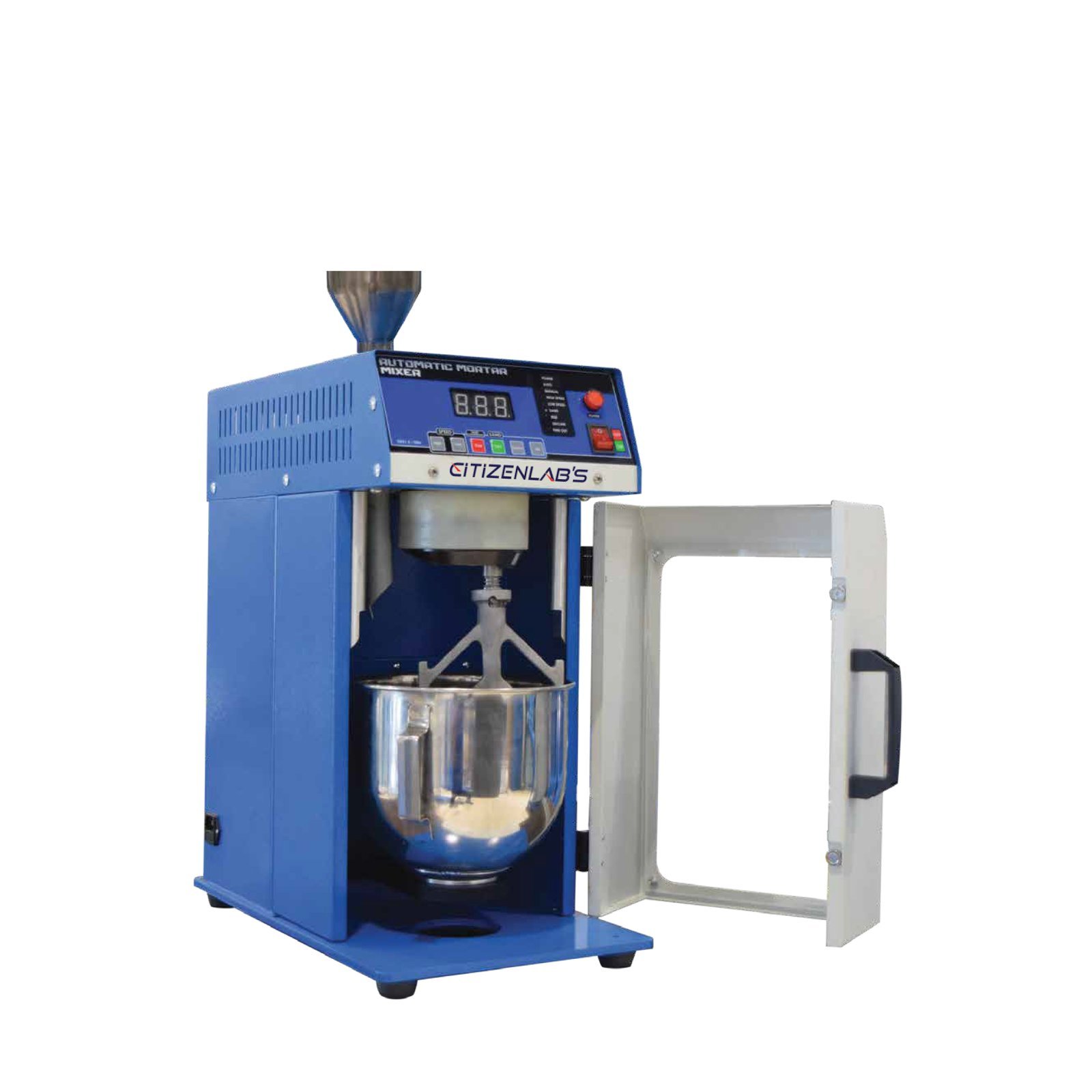 Automatic mortar mixers are machines designed specifically to streamline the mixing process. In construction, mortar is a vital material used for binding bricks, stones, or other building units together. It’s essentially a mixture of cement, sand, and water. Mixing mortar manually can be time-consuming and physically demanding, especially for larger construction projects. That’s where automatic mortar mixers come in. They typically consist of a rotating drum or paddles where the ingredients are loaded. Once the ingredients are added, the mixer automatically rotates or agitates them to ensure thorough blending. This automation saves significant time and effort compared to mixing by hand. This apparatus has specially been designed to prepare cement mortar for strength determination as specified in standard. It can also be used in mixing lime with pozzolanic materials for determination of lime reactivity (as per IS 1727) & for uniform mixing of soils with additives such as lime, cement, etc. New Mortar Mixer comes with built in door for better safety.